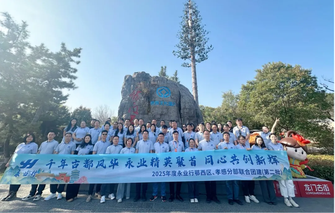 2025年3月21-23日,永业行鄂西区与孝感分部员工60余人赴河南,展开为期3天的文化探索之旅。副总裁兼鄂西区总经理雷小明携鄂西区执行总经理黄丽群、杨懿,孝感分部执行董事张立胜、总经理梁小虎参加团建活动。